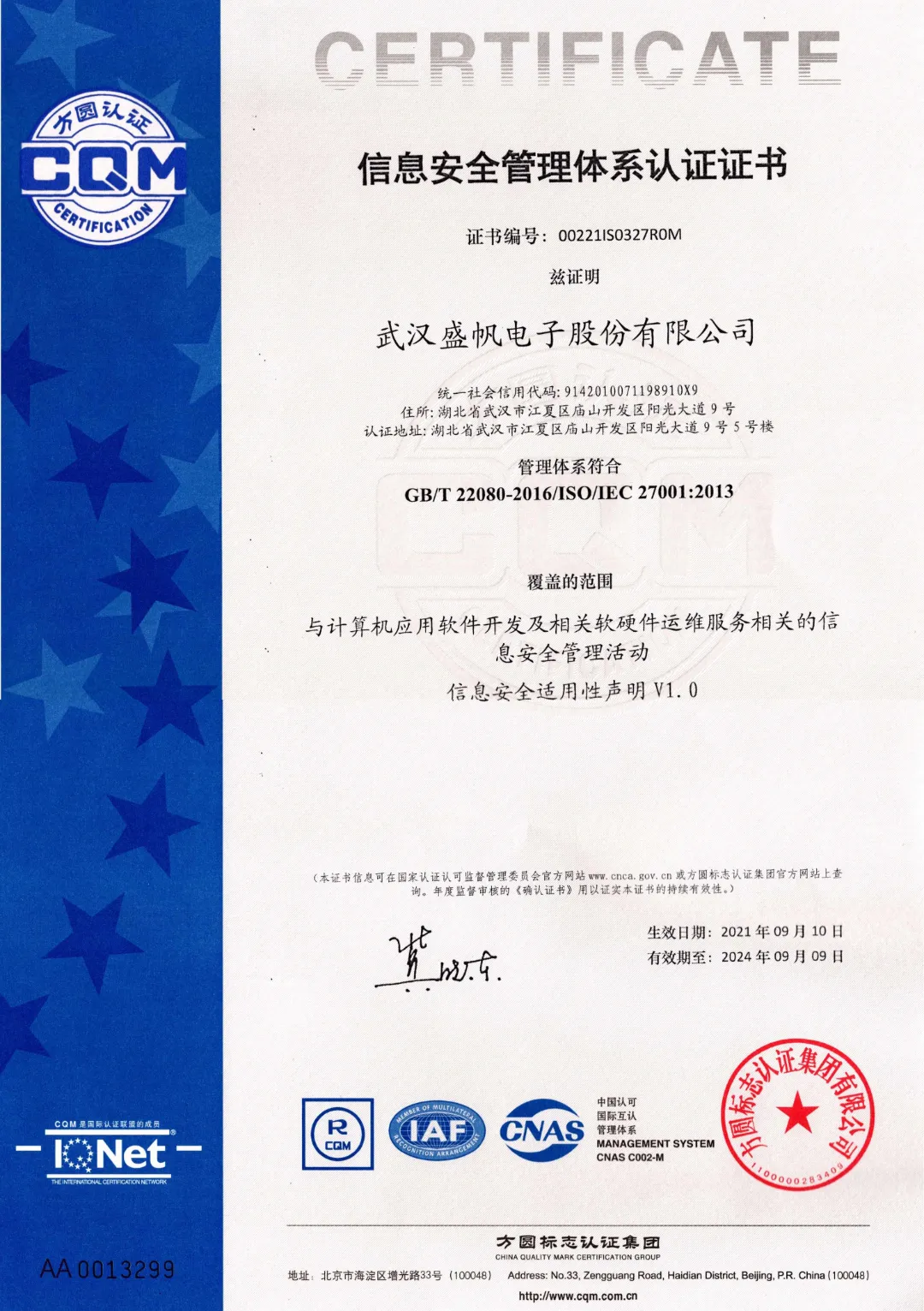 克日(ri),深圳盛帆(fan)智能(neng)股分不限(xian)企业顺遂(sui)经过(guo)过(guo)程(cheng)IS🍰O27001能(neng)力测评,正规拥有(you)新信息灵动申办(ban)体系建(jian)设身份(fen)验(yan)证证件。这次在身份(fen)验(yan)证内(nei)容(rong)涵盖(gai)了与(yu)比较机根据工具发展壮大(da)及相(xiang)干薄厚件运维和技术办(ban)事效率相(xiang)干的🃏新信息灵动申办(ban)勾当等营业时间区(qu)域。